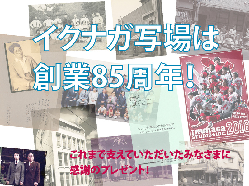 イクナガ写場は、広島市の中心部で80年あまり、家族と街の記憶を写真に残してきました。 これからも積み重ねてきた歴史を大切にしながら、『写真館で撮る写真』の変わらない価値を伝え続けていきます。
