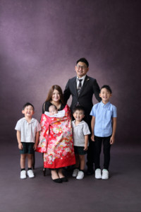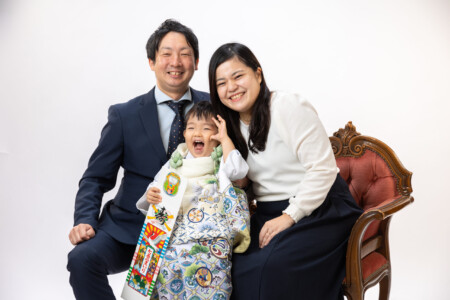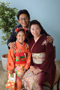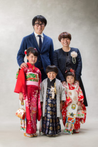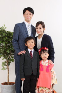 卒入学や七五三、成人式など少し改まった家族写真の場合は、男性はスーツまたはジャケットを、女性もいつもよりは少しフォーマルなお洋服や訪問着をお召しの方が多いです。