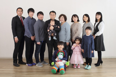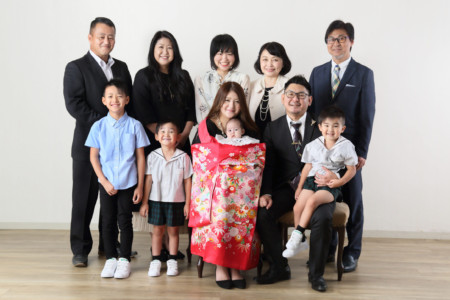 記念写真の際は、お越しになった皆さんご一緒でのご家族写真の撮影をおすすめしています。