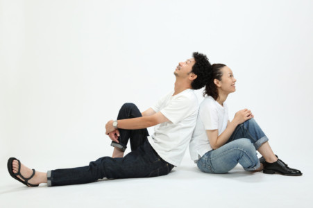 素材や色などひとつだけでもテーマを揃えると(白いシャツを着る、デニムパンツをはくなど)、服はばらばらでも統一感が出ます。