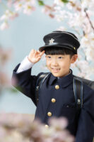 制服やかばんの他にも、お子さまの成長がわかる思い出の小物や小さいときの写真などを一緒に写すとより思い出に残ります。